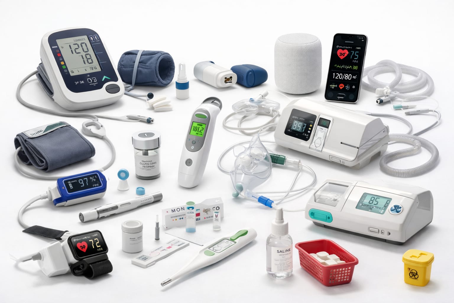 Digital BP Monitors, Pulse Oximeters, Digital Thermometers, Glucometers, ECG Portable Devices.